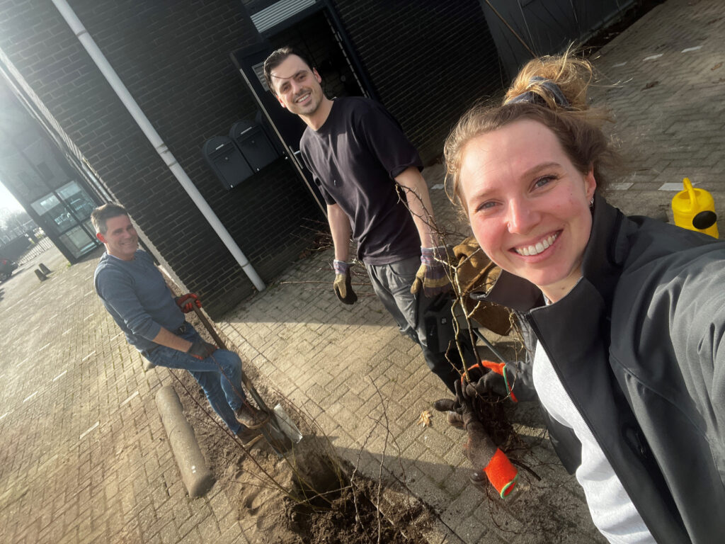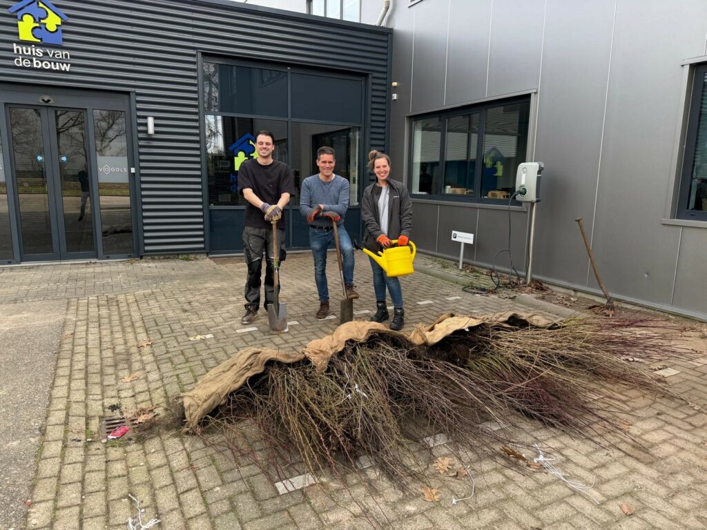 Afgelopen vrijdag staken collega’s Tim, Bart en Joëlla de handen uit de mouwen om samen een haag te planten. Een mooie en leuke afwisseling van het dagelijkse werk, met een resultaat waar we best trots op zijn!
